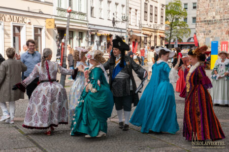 Watch walk-acts in historical robes, uniforms and costumes as well as rehearsals of historic dances: circle dances and alley dances of the 16th-18th centuries – in the tradition of the legendary Nikolai Festival.