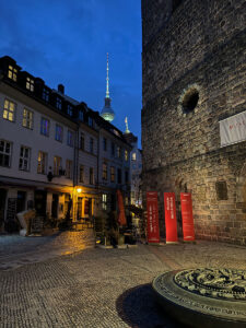 After a detour to the Gerichtslaube in Poststrasse, the tour ended with a walk through Eiergasse, Berlin’s shortest street, along Mühlendamm, past the Altes Stadthaus and on to the remains of the Franciscan monastery church.