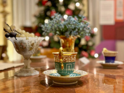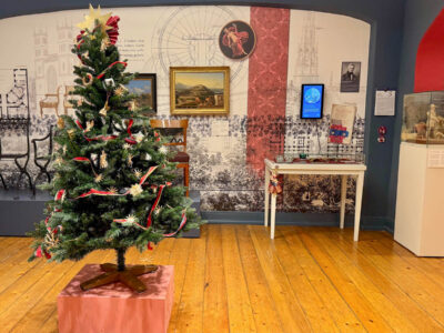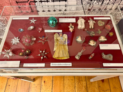 Besonders faszinierend sind die Vitrinen mit dem altem Weihnachtsbaumschmuck, der damals kunstvoll und filigran aus Glas, Papiermaché, Pappe oder Wachs hergestellt wurde – ebenso, wie eine liebevoll gefertigte alte Krippe. In der Bibliothek, in die sich Carl Knoblauch so gerne zum Lesen zurückzog, ist wunderbares altes Spielzeug dekoriert, von Tierfiguren und Miniaturmöbeln bis zu Puppen und einem großen Nussknacker sowie anderen Gegenständen, die Familien und ihre Kinder in der Weihnachtszeit vor 200 Jahren benutzt haben.