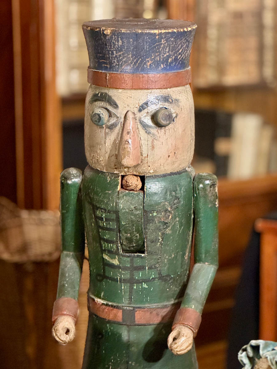Besonders faszinierend sind die Vitrinen mit dem altem Weihnachtsbaumschmuck, der damals kunstvoll und filigran aus Glas, Papiermaché, Pappe oder Wachs hergestellt wurde – ebenso, wie eine liebevoll gefertigte alte Krippe. In der Bibliothek, in die sich Carl Knoblauch so gerne zum Lesen zurückzog, ist wunderbares altes Spielzeug dekoriert, von Tierfiguren und Miniaturmöbeln bis zu Puppen und einem großen Nussknacker sowie anderen Gegenständen, die Familien und ihre Kinder in der Weihnachtszeit vor 200 Jahren benutzt haben.